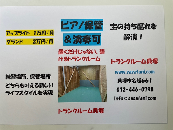 ピアノを保管して、尚且つ演奏もできる・・・という、日本初の「ピアノ演奏専用」部屋を設置しました。